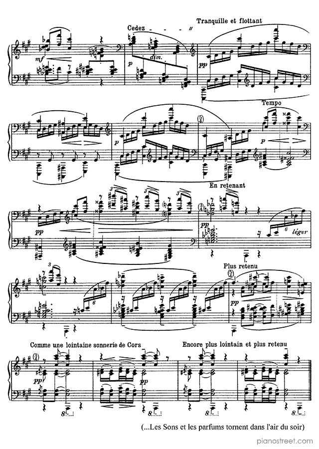 DOWNLOAD Prelude - Les Sons et les parfums tornent dans l'air du soir Book 1 No. 4 by Claude Debussy (published in 1908) . High quality classical piano scores from the Piano Street sheet music library.