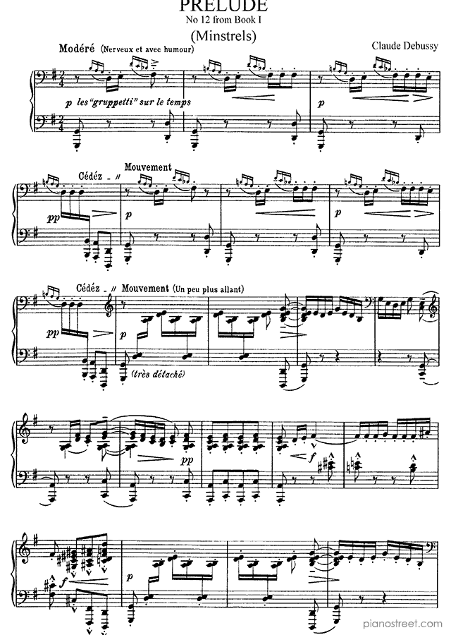 Prelude - Minstrels Book 1 No. 12 (published in 1908) from Preludes by Claude Debussy - piano sheet music to download and print instantly.