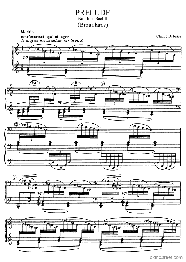 DOWNLOAD: Claude Debussy - Prelude - Brouillards Book 2 No. 1 ( from Preludes by Debussy). Piano sheet music to print immediately or to view in mobile devices.