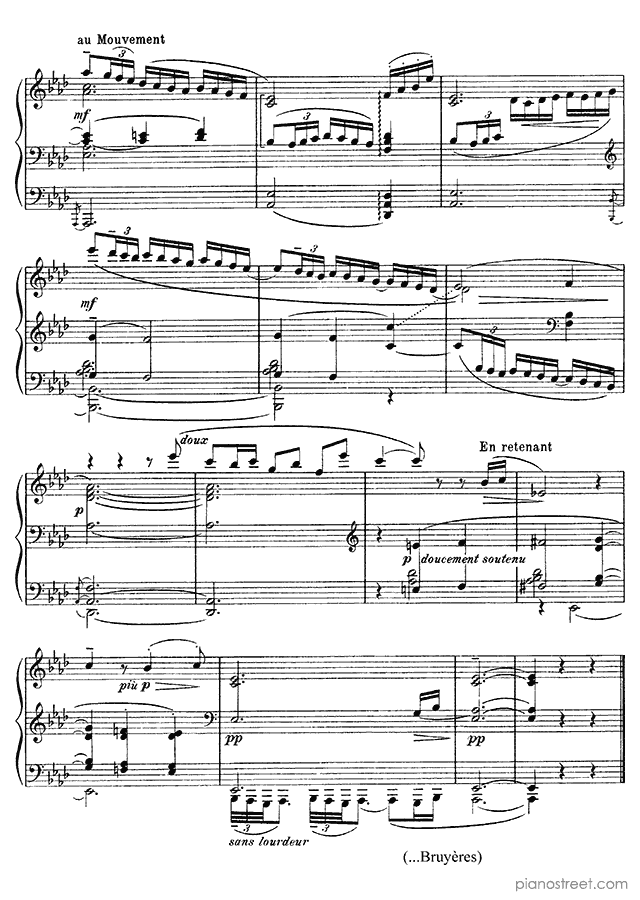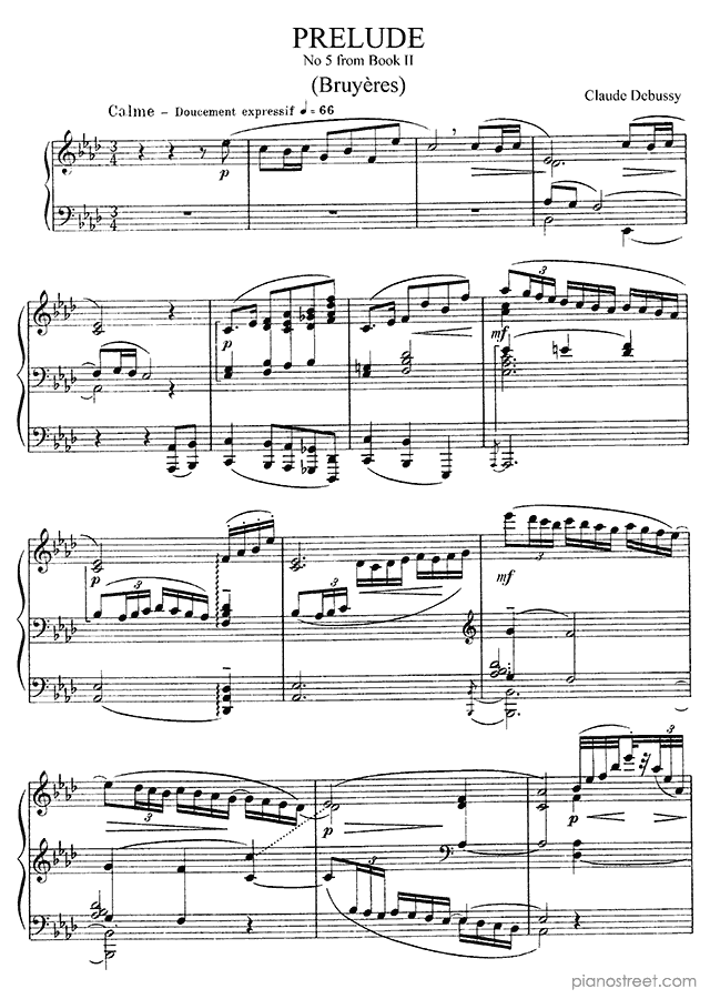 Impressionism piano sheet music by Claude Debussy to download and print instantly: Prelude - Bruyères Book 2 No. 5 in the key of . Level 8+, compositional type: Piece (published in 1913)