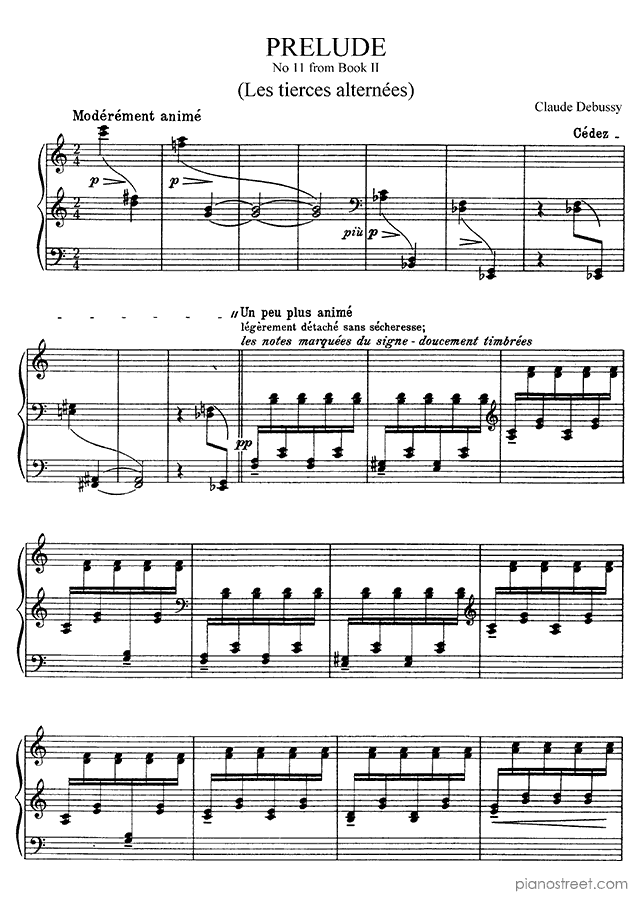 DOWNLOAD: Claude Debussy - Prelude - Les tierces alternées Book 2 No. 11 ( from Preludes by Debussy). Piano sheet music to print immediately or to view in mobile devices.