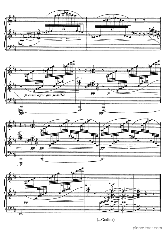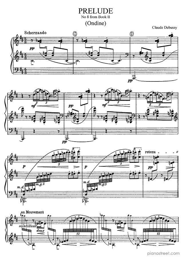 Debussy: Prelude - Ondine Book 2 No. 8 (published in 1913) . DOWNLOAD piano sheet music from Piano Street digital sheet music library.