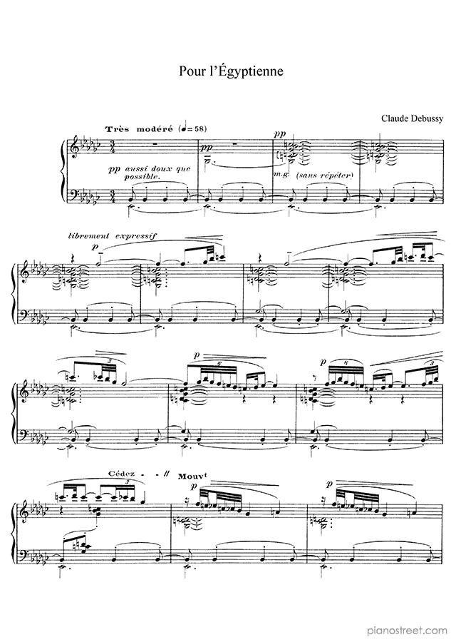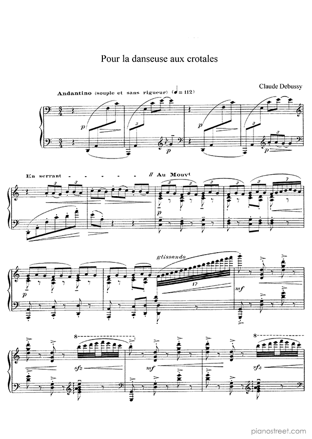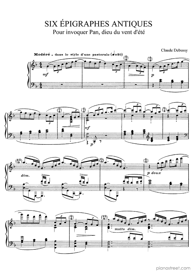 The composition was first published in 1914 and is included in Six épigraphes antiques (solo piano) by Debussy.
