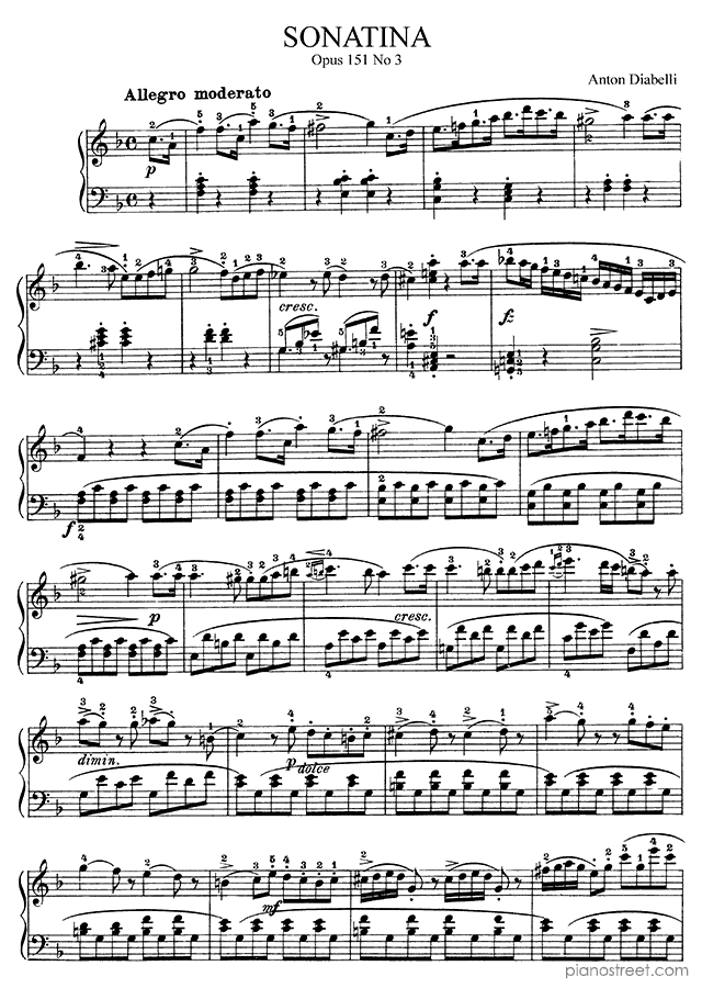 Sonatina in F Major - Op. 151 No. 3 is a piano piece by the classical composer Antonio Diabelli who lived between the years 1781 and 1858.