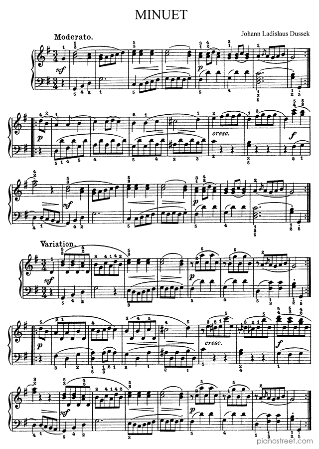 Dussek: Minuet in G Major . DOWNLOAD piano sheet music from Piano Street digital sheet music library.