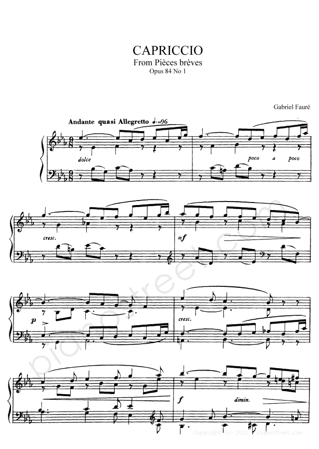 Fauré: Capriccio Op. 84 No. 1 in E-flat Major . DOWNLOAD piano sheet music from Piano Street digital sheet music library.