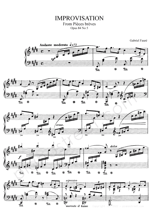 DOWNLOAD Improvisation in C-sharp Minor Op. 84 No. 5 by Gabriel Fauré. High quality classical piano scores from the Piano Street sheet music library.
