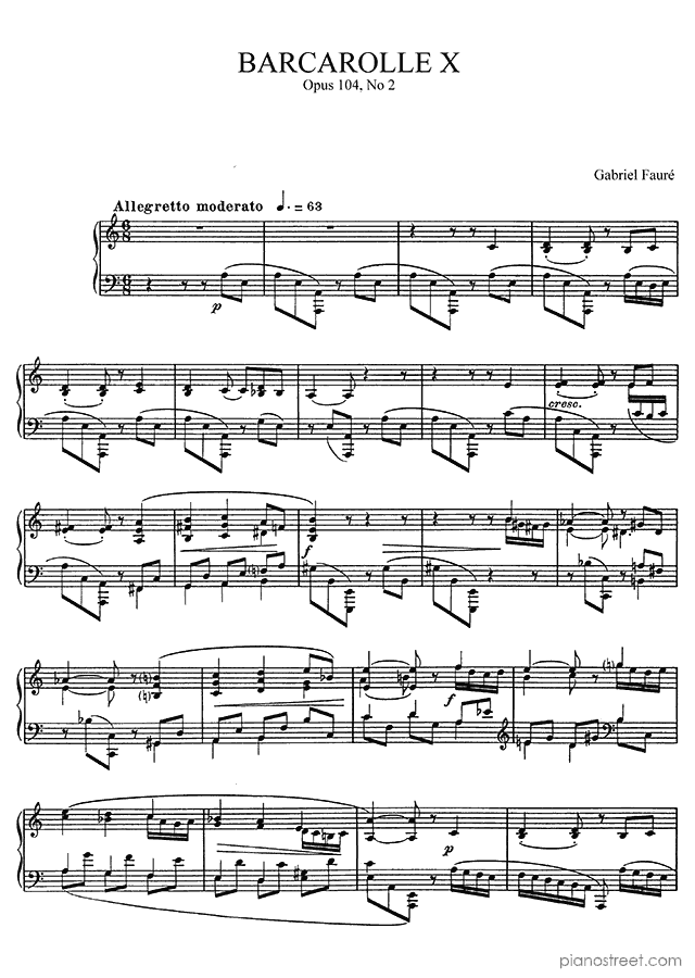 DOWNLOAD: Gabriel Fauré - Barcarolle 10 Op. 104 No. 2 in A Minor ( from Barcarolles by Fauré). Piano sheet music to print immediately or to view in mobile devices.