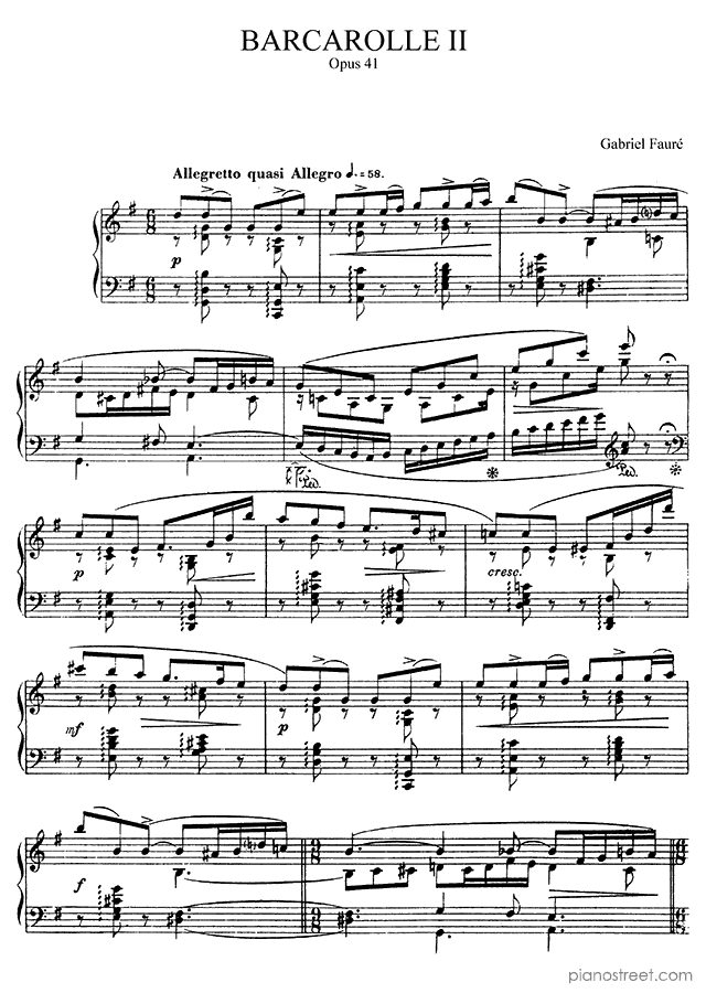 Downloadable piano sheet music from Barcarolles by Gabriel Fauré to print: Barcarolle 2 Op. 41 in G Major