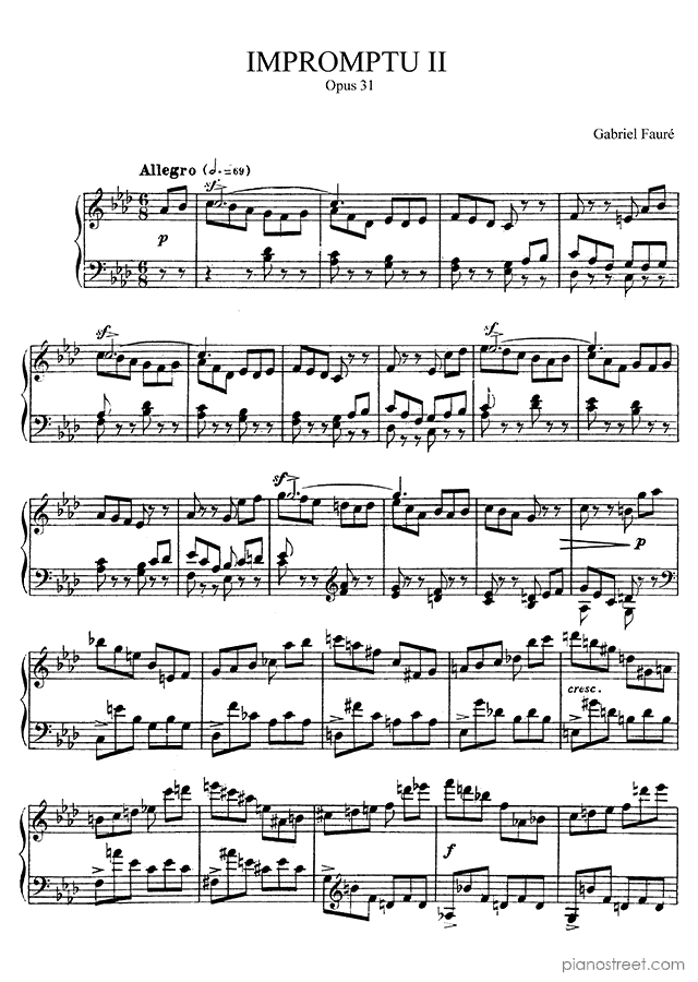 Classical piano sheet music by Fauré to download: Impromptu 2 Op. 31 in the key of This piece has difficulty level 8 in the category Piece