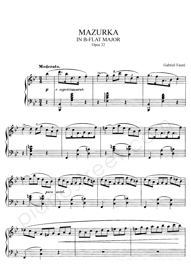 DOWNLOAD Mazurka in B-flat Major Op. 32 by Gabriel Fauré (published in 1875) . High quality classical piano scores from the Piano Street sheet music library.
