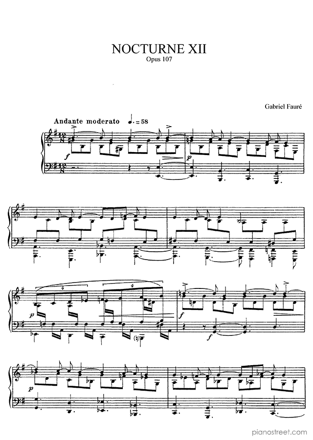 DOWNLOAD: Gabriel Fauré - Nocturne 12 Op. 107 in E Minor ( from Nocturnes by Fauré). Piano sheet music to print immediately or to view in mobile devices.