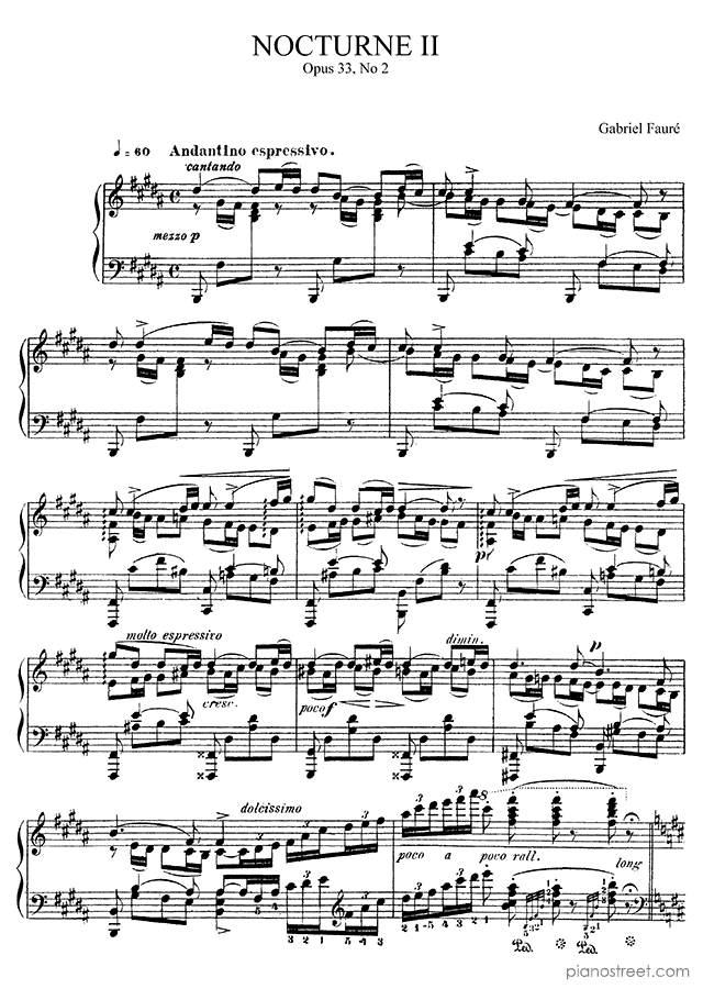 DOWNLOAD: Gabriel Fauré - Nocturne 2 Op. 33 No. 2 in B Major ( from Nocturnes by Fauré). Piano sheet music to print immediately or to view in mobile devices.