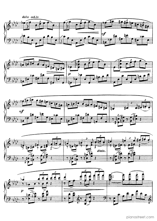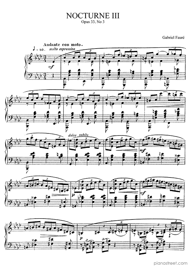 DOWNLOAD Nocturne 3 in A-flat Major Op. 33 No. 3 by Gabriel Fauré. High quality classical piano scores from the Piano Street sheet music library.