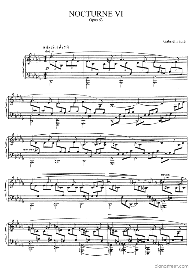 Late Romantic piano sheet music by Gabriel Fauré to download and print instantly: Nocturne 6 Op. 63 in the key of . Level 8, composition type: Piece