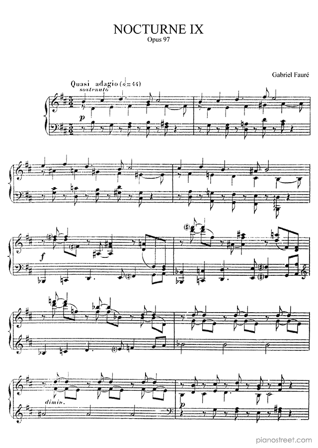 Fauré: Nocturne 9 Op. 97 in B Minor . DOWNLOAD piano sheet music from Piano Street digital sheet music library.