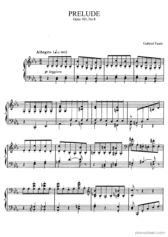 DOWNLOAD: Gabriel Fauré - Prelude Op. 103 No. 8 in C Minor ( from Preludes by Fauré). Piano sheet music to print immediately or to view in mobile devices.