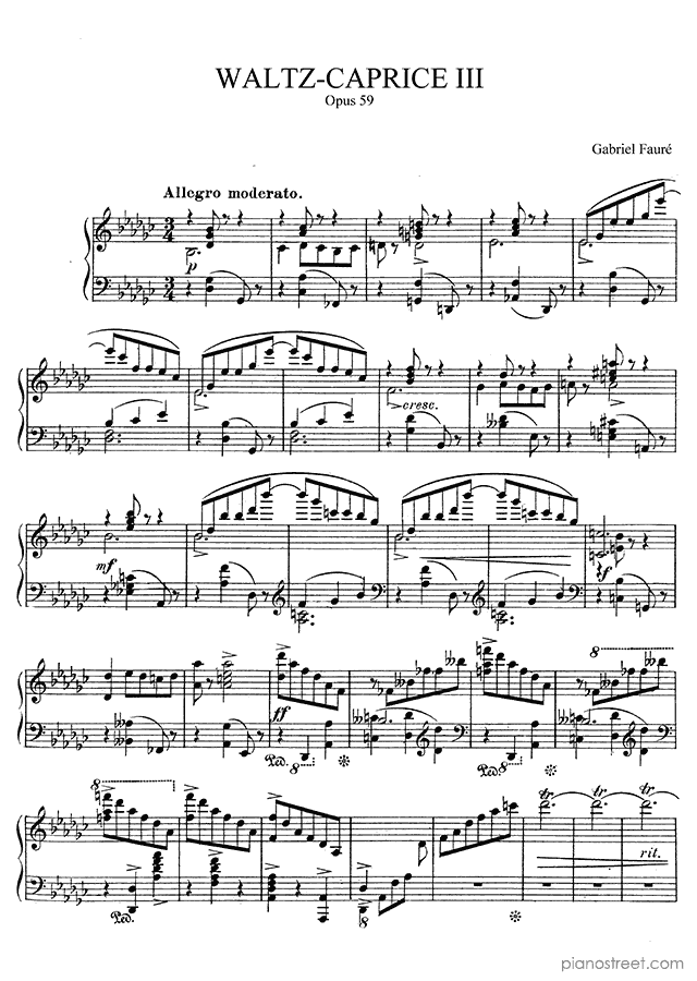 Waltz-Caprice 3 in G-flat Major - Op. 59 is a piano piece by the late romantic composer Gabriel Fauré who lived between the years 1845 and 1924.
