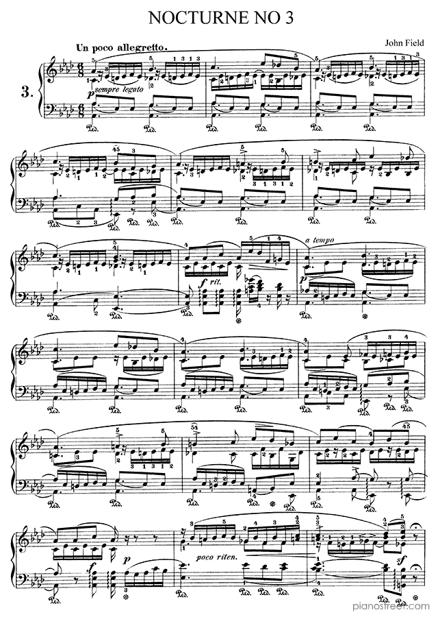 Nocturne in A-flat Major No. 3 by John Field. Sheet music and recordings of thousands of piano pieces by John Field and many other famous composers to view in your digital device, print out or listen to.