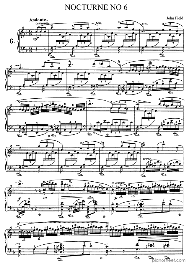 DOWNLOAD Nocturne in F Major No. 6 by John Field. High quality classical piano scores from the Piano Street sheet music library.