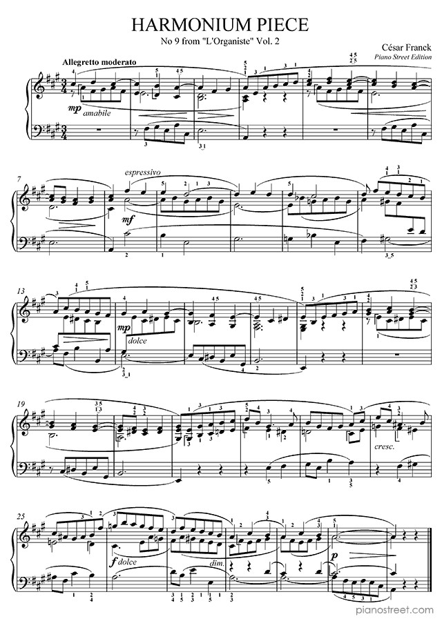 Franck: Allegretto moderato in A Major . DOWNLOAD piano sheet music from Piano Street digital sheet music library.