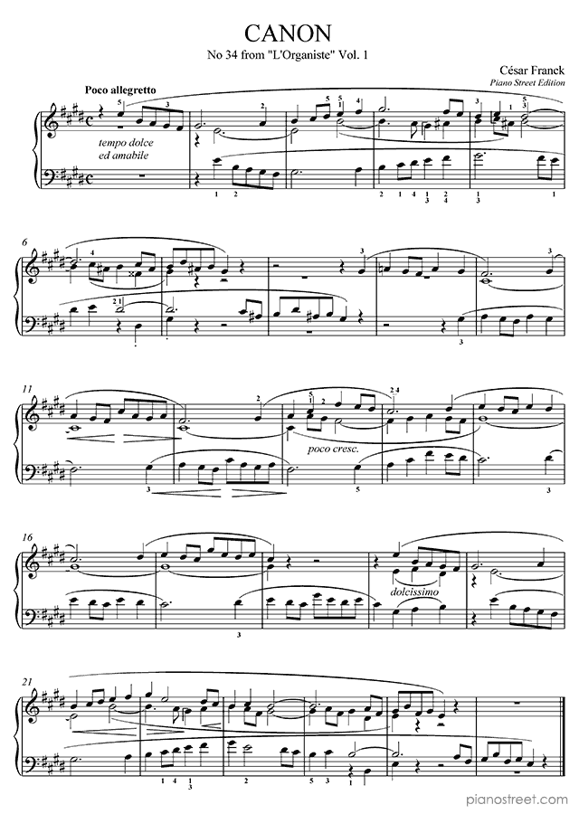 DOWNLOAD Canon in E Major No. 34 by César Franck. High quality classical piano scores from the Piano Street sheet music library.