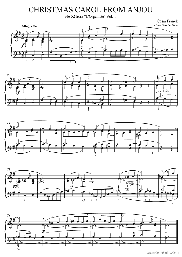 Early Romantic piano sheet music by César Franck to download and print instantly: Christmas Carol from Anjou No. 52 in the key of . Level 4, composition type: Piece