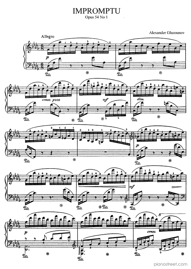 Impromptu in D-flat Major - Op. 54 No. 1 is a piano piece by the late romantic composer Alexander Glazounov who lived between the years 1865 and 1936.