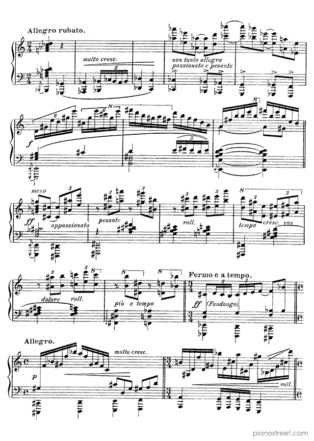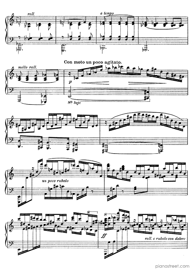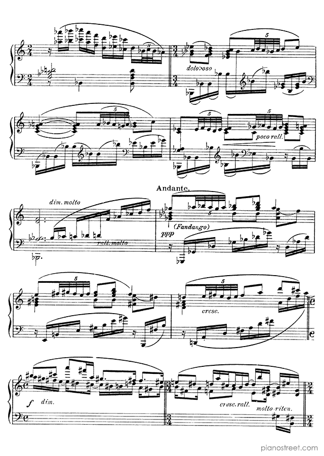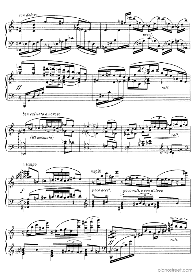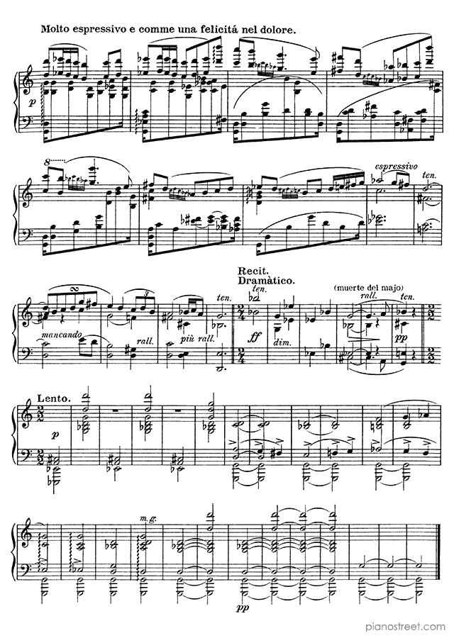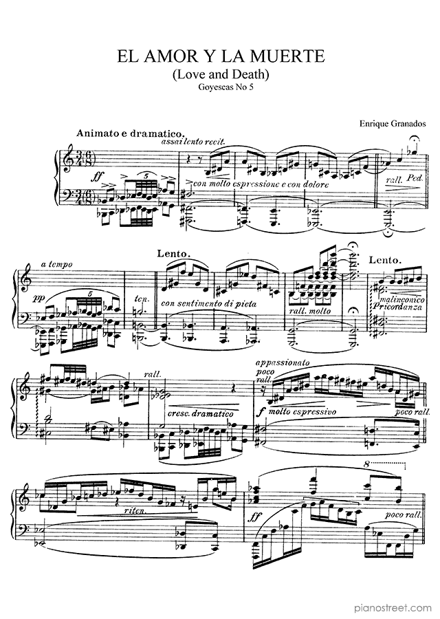Piano sheet music downloads and recordings. This piece is from Goyescas by Enrique Granados: El amor y la muerte No. 5 (published in 1911) . Level 8+, Period: Late Romantic