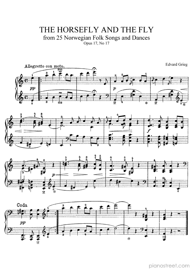 Classical piano sheet music by Grieg to download: The Horsefly and the Fly Op. 17 No. 17 in the key of This piece has difficulty level 4 in the category Piece