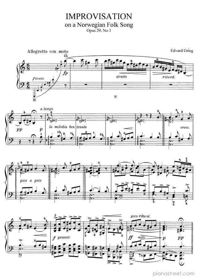 DOWNLOAD: Edvard Grieg - Improvisation on a Norwegian Folk Song Op. 29 No. 1 in A Minor ( from Improvisations on Two Norwegian Folk Songs by Grieg). Piano sheet music to print immediately or to view in mobile devices.