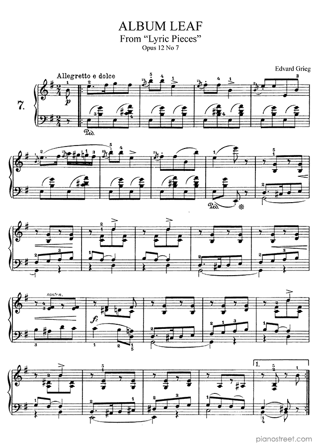 Album Leaf Op. 12 No. 7 in E Minor, a composition by the early romantic composer Edvard Grieg. The piano score of this piece was first published in 1867 and is part of Lyric Pieces by Grieg.