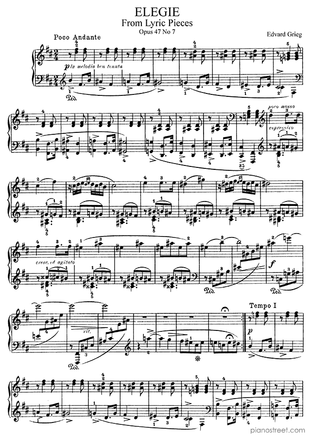 Classical piano sheet music by Grieg to download: Elegie Op. 47 No. 7 in the key of This piece has difficulty level 5 in the category Piece
