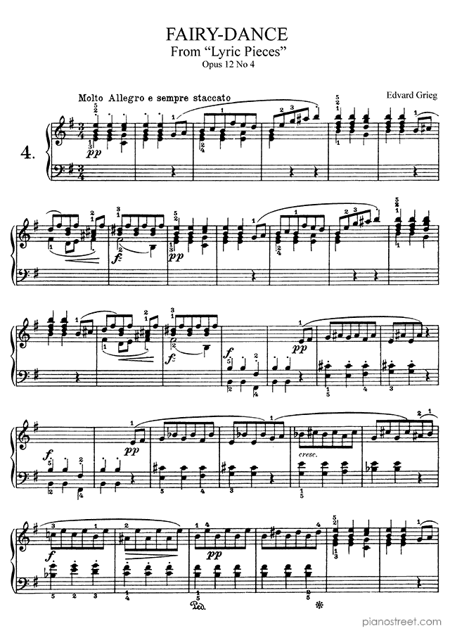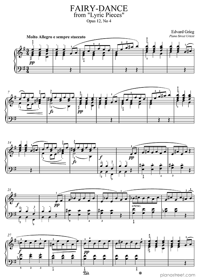 Fairy Dance in E Minor - Op. 12 No. 4 is a piano piece by the early romantic composer Edvard Grieg who lived between the years 1843 and 1907.