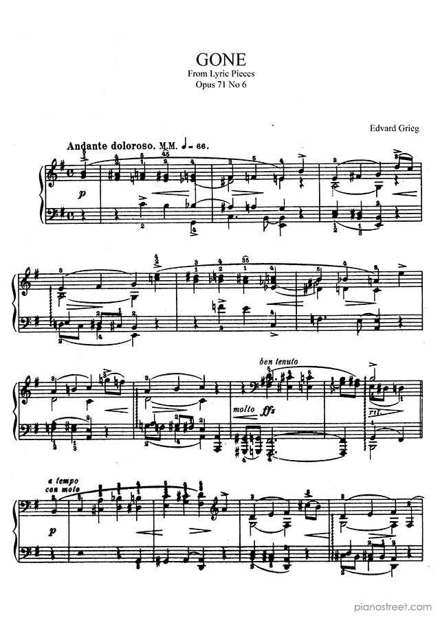 Downloadable piano sheet music from Lyric Pieces by Edvard Grieg to print: Gone Op. 71 No. 6 in E Minor