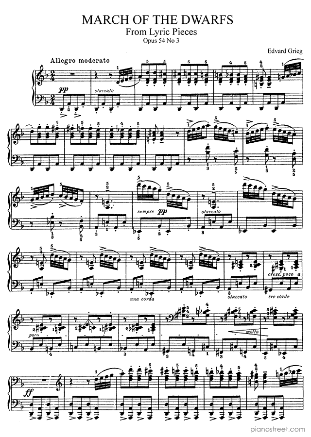 Downloadable piano sheet music from Lyric Pieces by Edvard Grieg to print: March of the Dwarfs Op. 54 No. 3 in D Minor