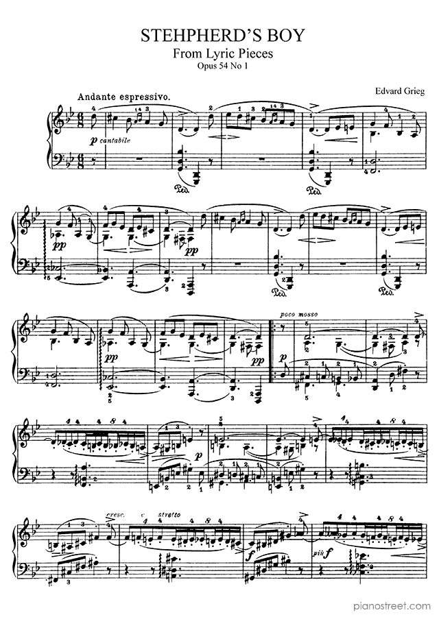 DOWNLOAD: Edvard Grieg - Shepherd's Boy Op. 54 No. 1 in G Minor ( from Lyric Pieces by Grieg). Piano sheet music to print immediately or to view in mobile devices.