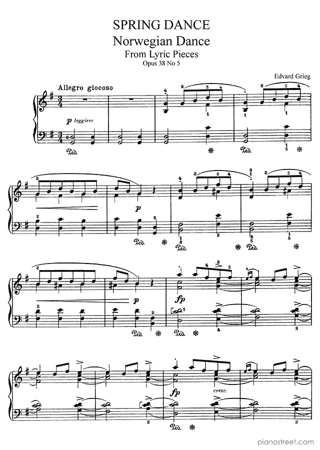 Grieg: Springdans - Norwegian Dance Op. 38 No. 5 in G Major . DOWNLOAD piano sheet music from Piano Street digital sheet music library.