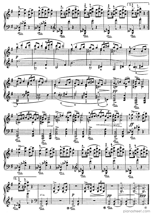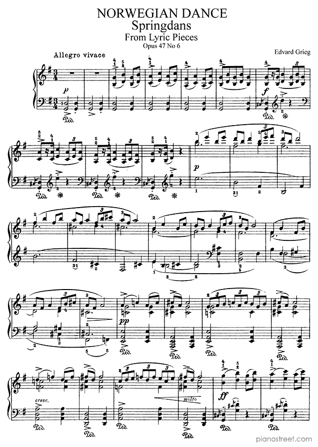 Downloadable piano sheet music from Lyric Pieces by Edvard Grieg to print: Springdans - Norwegian Dance Op. 47 No. 6 in G Major