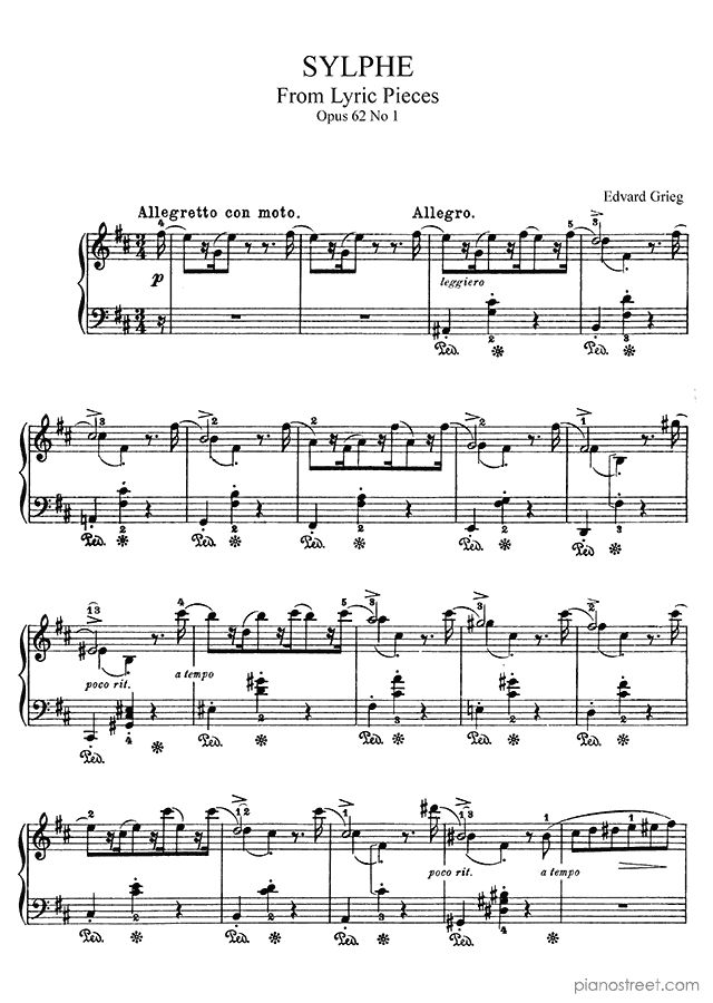 Edvard Grieg: Sylphe Op. 62 No. 1 in B Minor from Lyric Pieces - piano sheet music to print instantly. This piece is level 5 and was composed during the Early Romantic period.