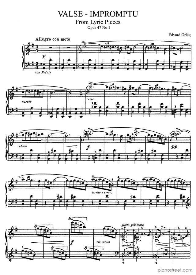 Grieg: Valse - Impromptu Op. 47 No. 1 in E Minor . DOWNLOAD piano sheet music from Piano Street digital sheet music library.