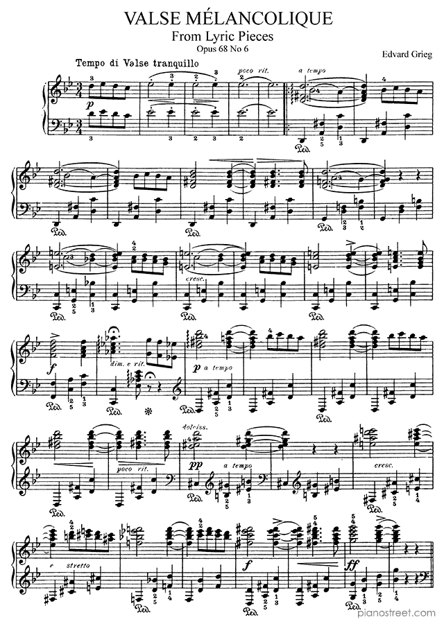 Grieg: Valse Mélancolique Op. 68 No. 6 in G Minor . DOWNLOAD piano sheet music from Piano Street digital sheet music library.