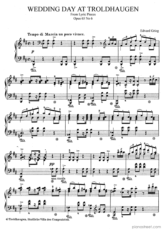 Wedding-Day at Troldhaugen in D Major - Op. 65 No. 6 is a piano piece by the early romantic composer Edvard Grieg who lived between the years 1843 and 1907.