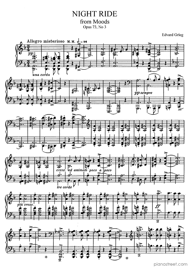 Night Ride in D Minor - Op. 73 No. 3 is a piano piece by the early romantic composer Edvard Grieg who lived between the years 1843 and 1907.