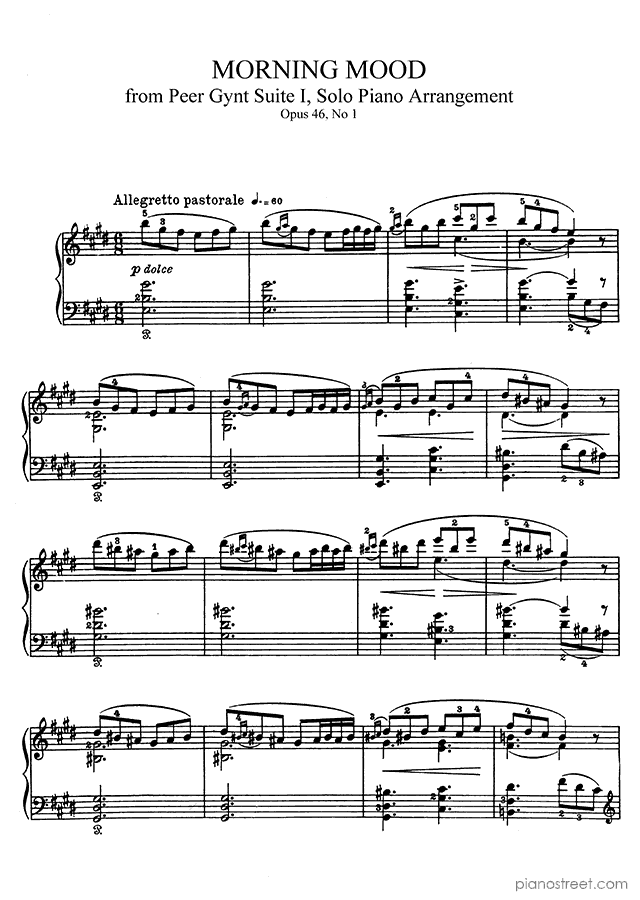 Classical piano sheet music by Grieg to download: Morning Mood Op. 46 No. 1 in the key of This piece has difficulty level 6 in the category Suite