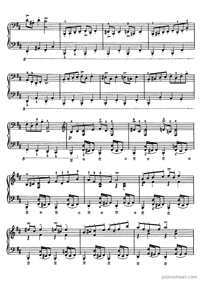 This piece is composed by Edvard Grieg and was published in 1888. Title: In the hall of the Mountain King, Op. 46 No. 4 in B Minor from Peer Gynt Suites. The difficulty level is around ABRSM grade 6 and it belongs to the Early Romantic period.