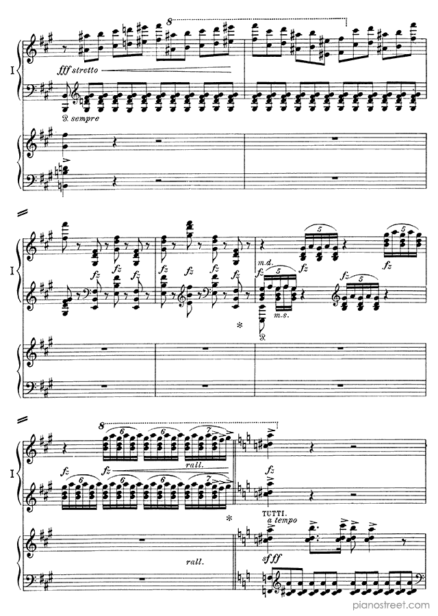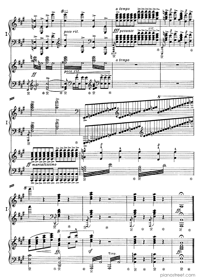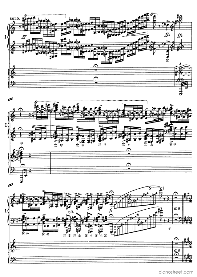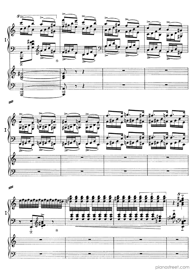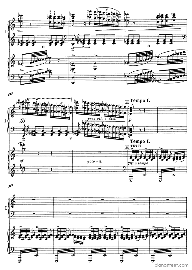 Hello! Can someone help me to chose the fingers and hands in the descending alternation of notes passage, right after the descending octaves and the chord in fff? I would be...
