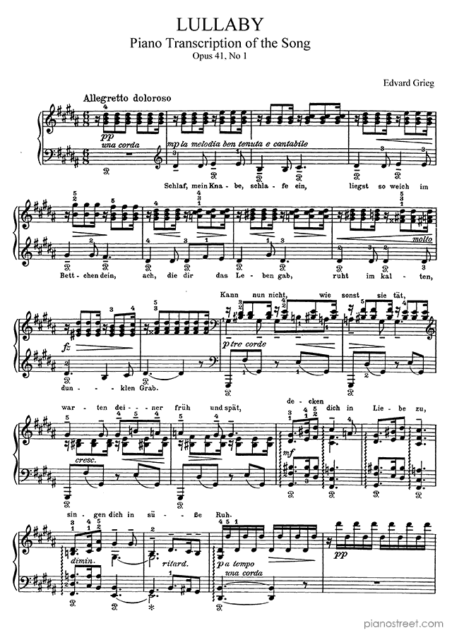 Grieg: Lullaby Op. 41 No. 1 in B Major (published in 1884) . DOWNLOAD piano sheet music from Piano Street digital sheet music library.