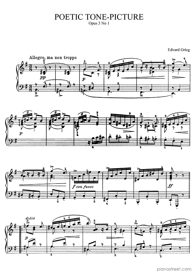 DOWNLOAD Poetic Tone-Picture in E Minor Op. 3 No. 1 by Edvard Grieg (published in 1863) . High quality classical piano scores from the Piano Street sheet music library.