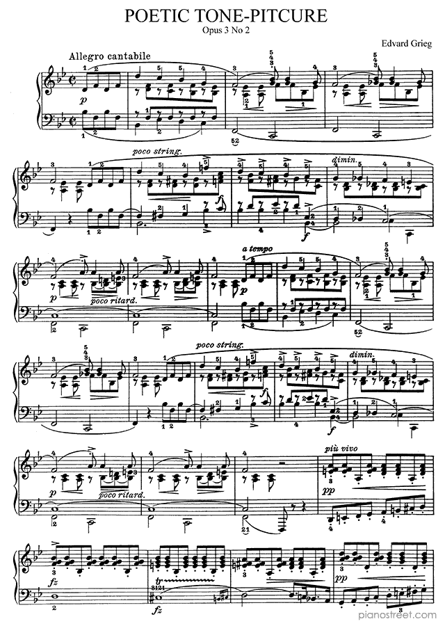 Downloadable piano sheet music from Poetic Tone-Pictures by Edvard Grieg to print: Poetic Tone-Picture Op. 3 No. 2 in B-flat Major (published in 1863)